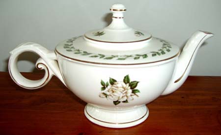 teapot. The Cameo Rose pattern features